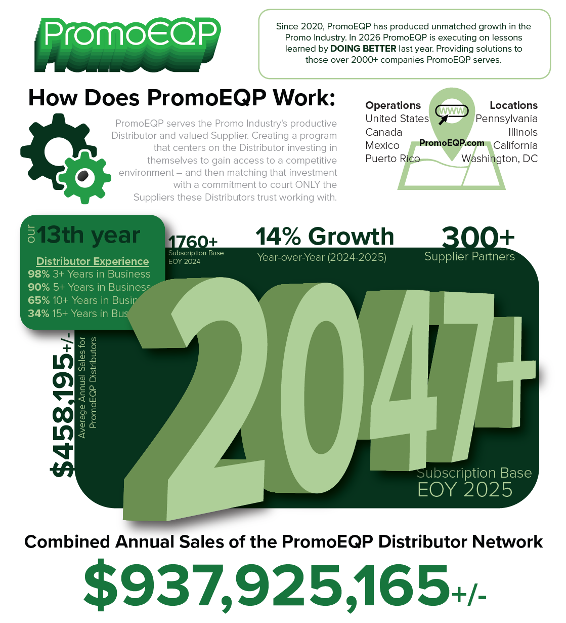 Rather, PromoEQP has acted on thoughtful and proven long-term strategies. In doing so, PromoEQP has achieved remodeling the classic approach to business in the Promotional Product Industry.